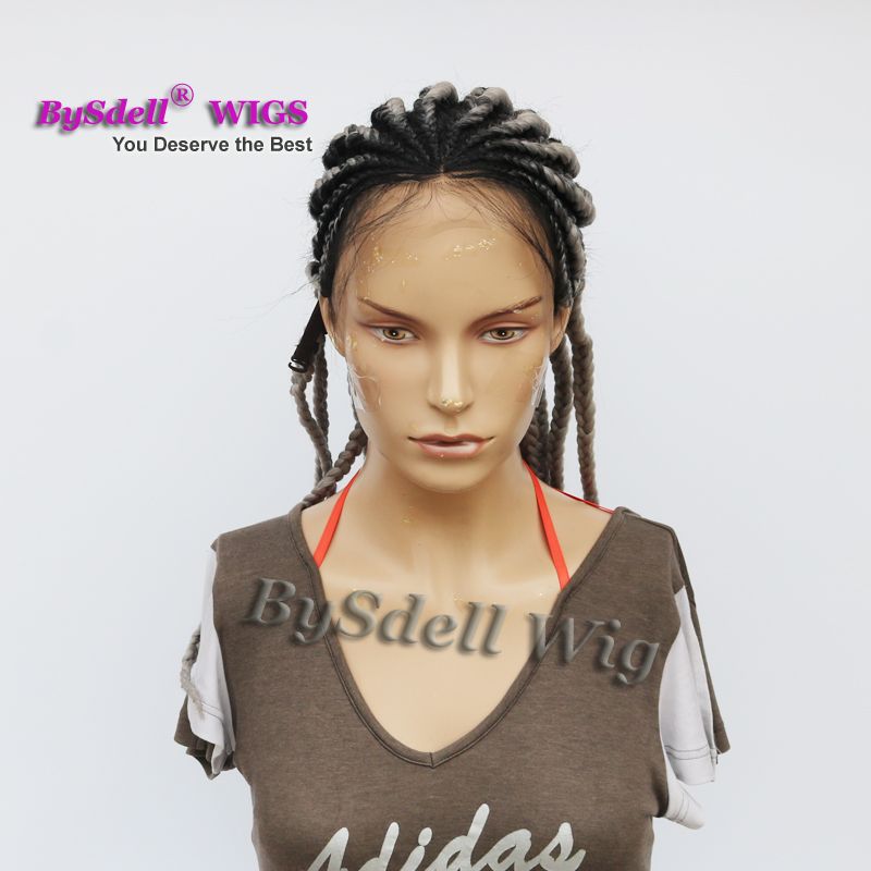 Watermelon Hairstyle Fat Braids Wig Synthetic Grey Color Hair Braided Lace Front Wigs With Baby Hair For Black White Woman Lace Wig Front Celebrity