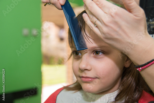 Little Girl Getting Haircut In Salon Buy This Stock Photo