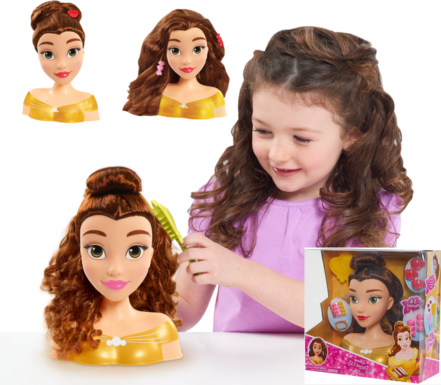 Disney Princess Basic Girls Belle Styling Beauty Head Doll Set Hair Hairstyle