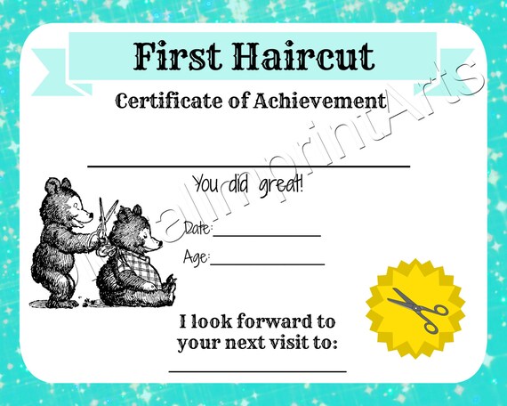 Keep in mind that every child is different and there is no certain age at which they need that first cut. Babys first haircut certificate free template 2. Also later the certificate can be framed and put on the memory wall at home.