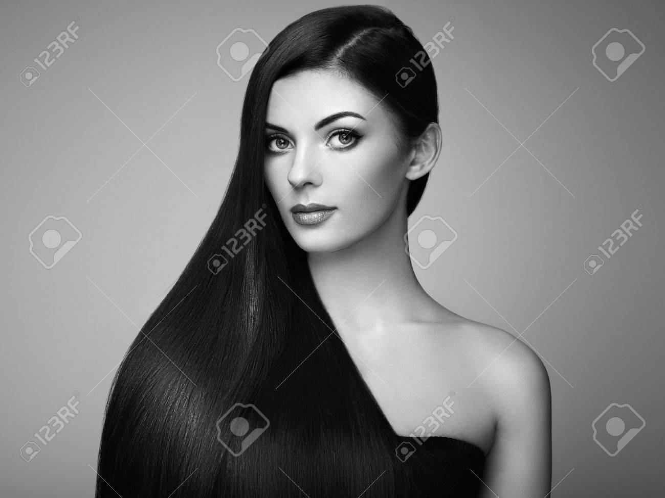 Beautiful Woman With Long Smooth Hair Girl With Perfect Makeup