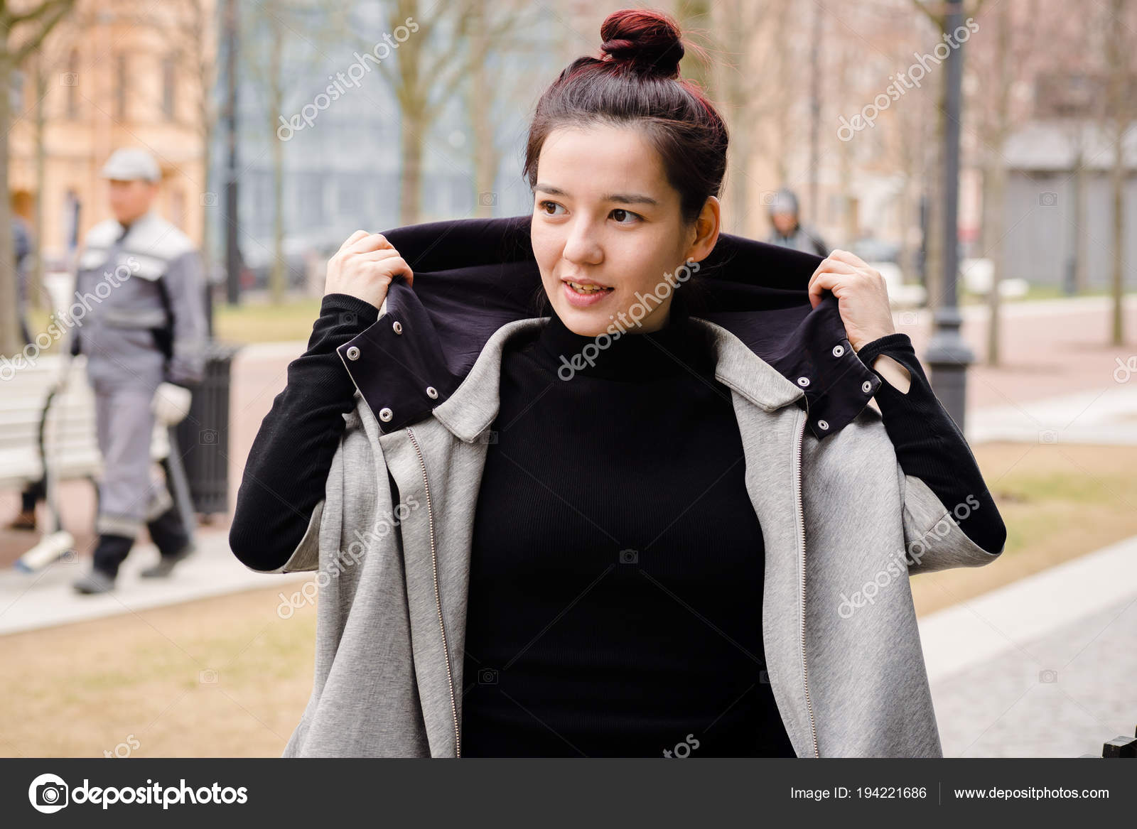 Asian Girl Mixed Race Top Knot Hair Style City Park Stock