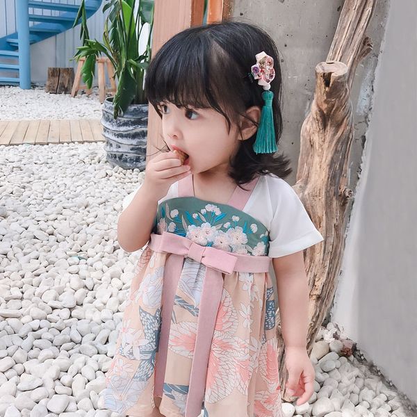 2019 Infant Little Girl Children S Hanfu Girl S Dress Princess 1 2 Years Old Baby S Summer Dress Fairy Floral Bow Chiffon Dressd216 From