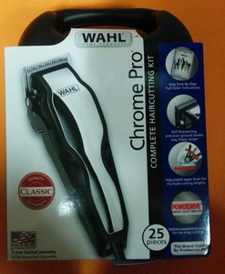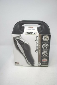 Wahl chrome pro 24 pc haircut kit. The wahl chrome pro 24 piece haircut kit is an all purpose professional grooming kit. Theres the chrome pro clipper a small battery powered trimmer scissors combs cape clipper guards and even a storage case 27 pieces in all. Self sharpening high carbon steel blades stay sharp longer.