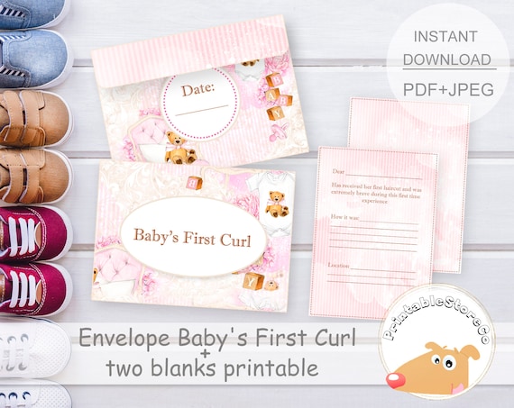 Printable Pink Baby S First Curl Envelope First Haircut Keepsake Envelope Template My 1st Haircut Rose And Bear Baby Milestone